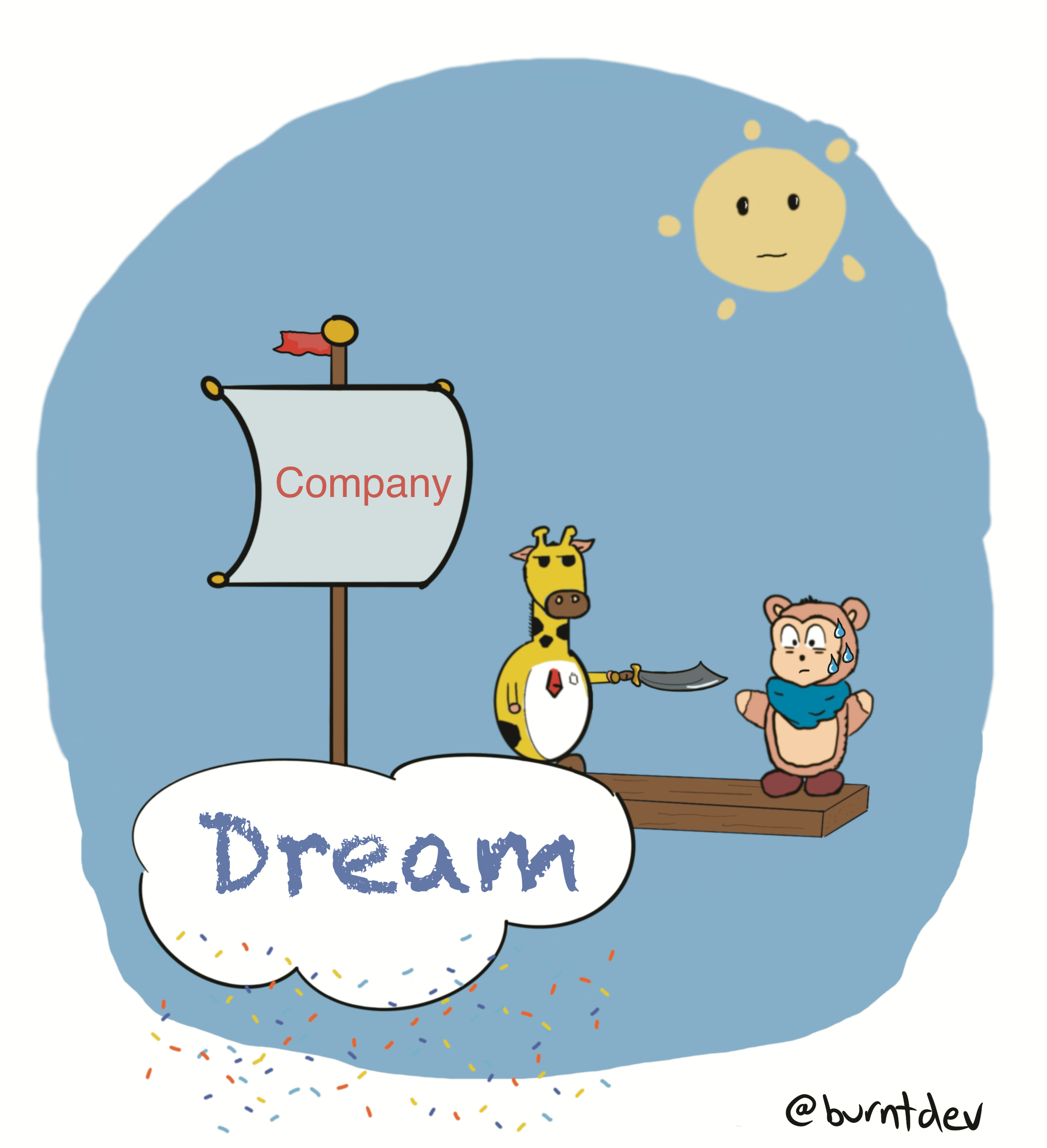 This is where I have some bad news to share with you. You do not own this dream. The company does. As an employee, you were granted privileges to borrow this dream. As for the work family, that’s not always a cozy group. Some people would say “the difference between a work family versus your real family is that you get to choose your work family”. Companies own that too. You’re family until you’re not.