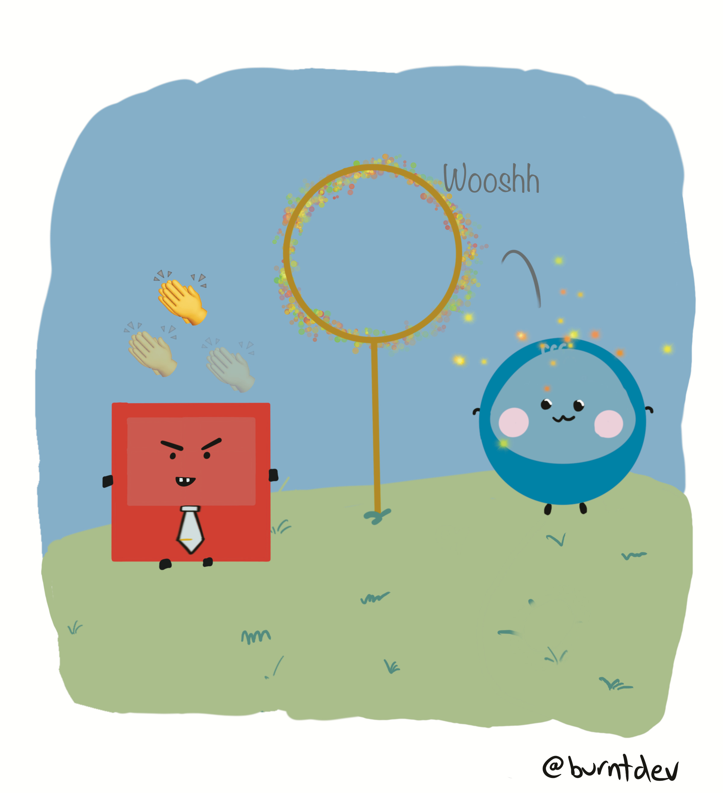 One day Circelle was applying for a job. She was interviewed by the hiring manager, Squar-emy. Squar-emy is impressed that Circelle is so good at jumping through circles.